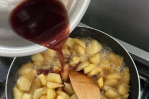 ①の水分を飛ばしたりんごにお好みのリキュールなど ★(なくても良い)全体なじませ、さらに中火で水分を飛ばします。